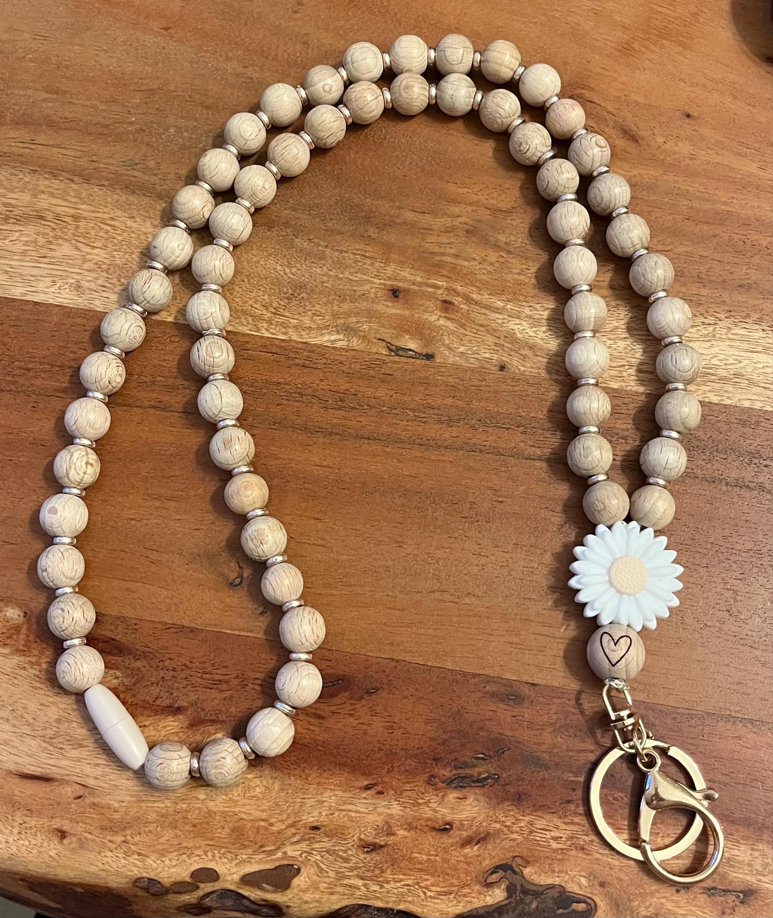 Overall, this lanyard made of wooden beads with a large flower and engraved details is not only a practical everyday accessory, but also an eye-catcher with a personal touch. Get this unique piece of nature and craftsmanship to provide stylish and personalized storage for your keys or ID cards.