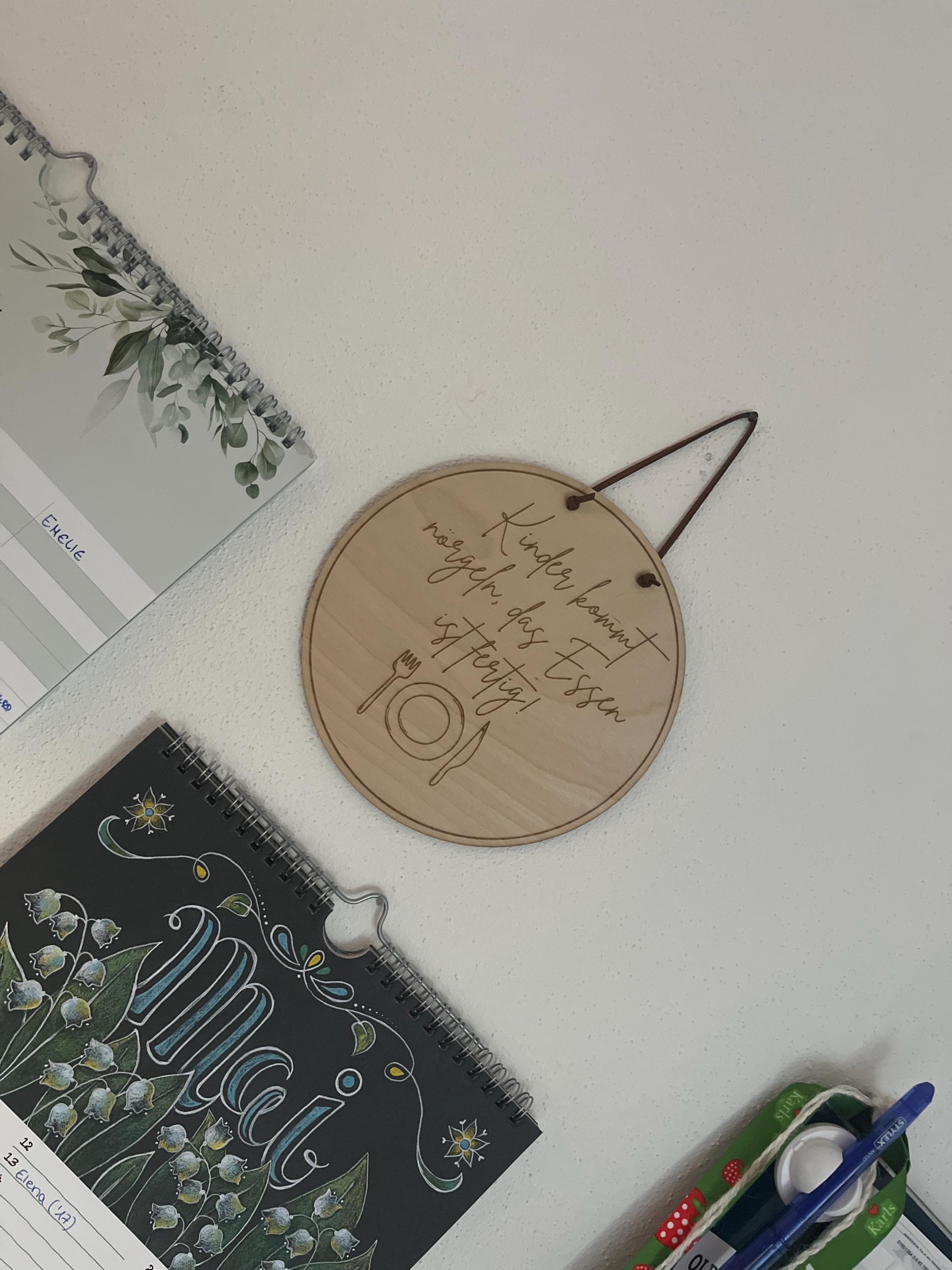 Do you know that feeling? Dinner's finally ready, and at that exact moment, the kids suddenly have a thousand other things to do – or start complaining. This lovingly designed wooden sign adds a touch of humor to the situation. It will not only bring a smile to your family's face but also add a cozy, personal touch to your kitchen or dining area.