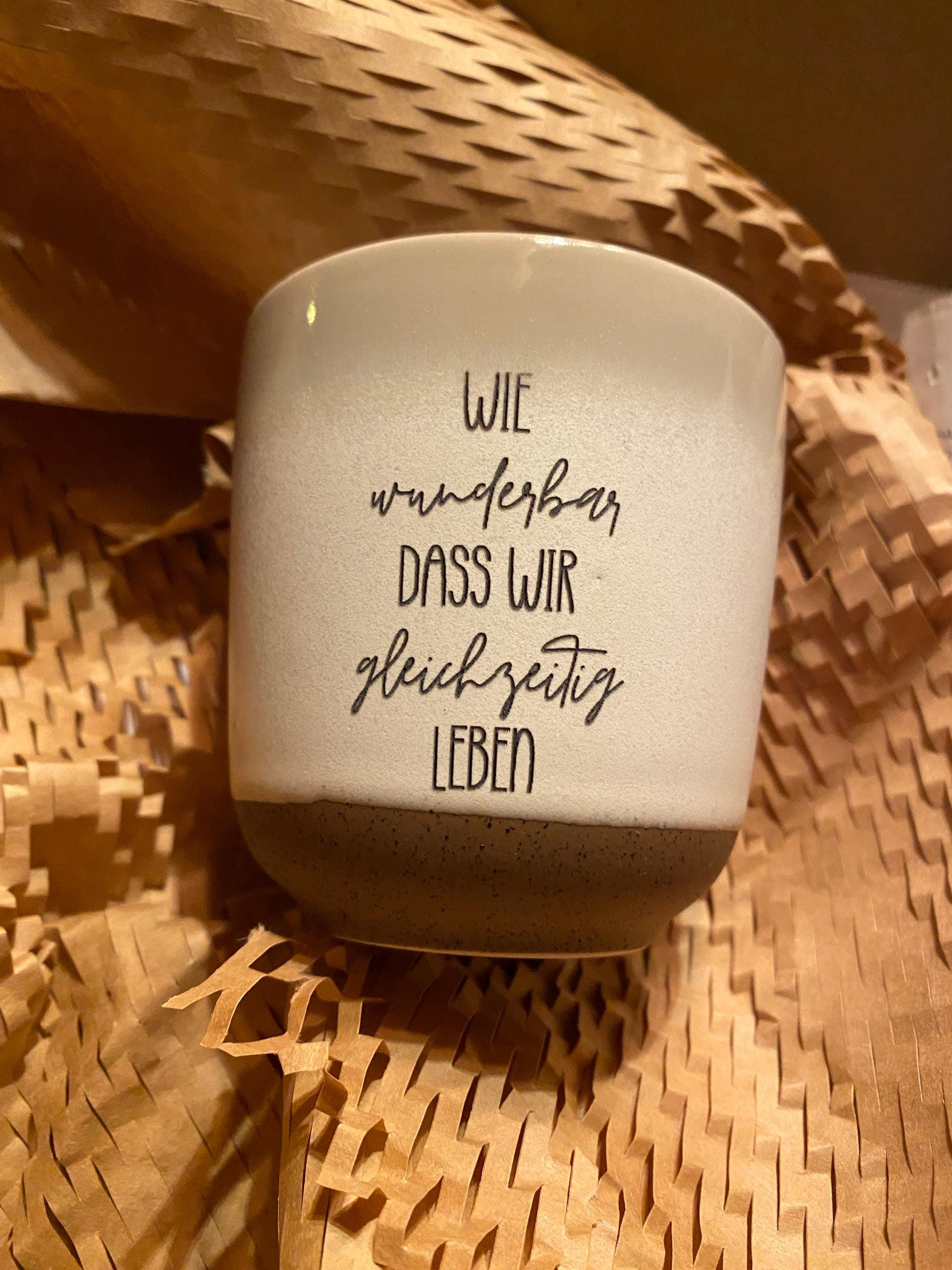 This stylish ceramic mug with a minimalist design captivates with the inspiring quote "How wonderful that we live at the same time." It's not only a practical everyday companion for coffee, tea, or hot chocolate, but also a thoughtful gift for friends, family, or your partner.